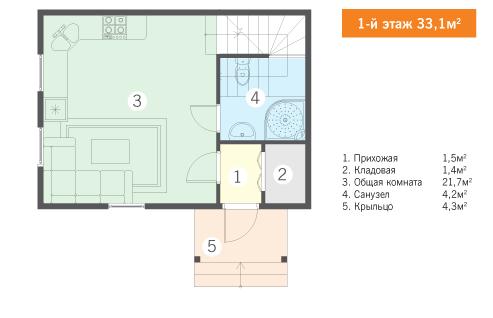 Общая площадь: 57 м²