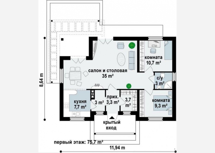 Общая площадь: 76 м²