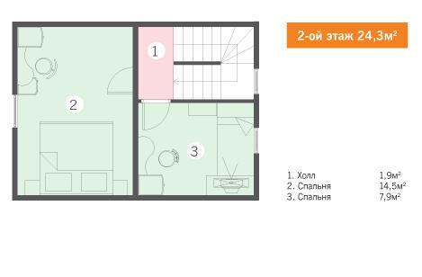 Общая площадь: 57 м²