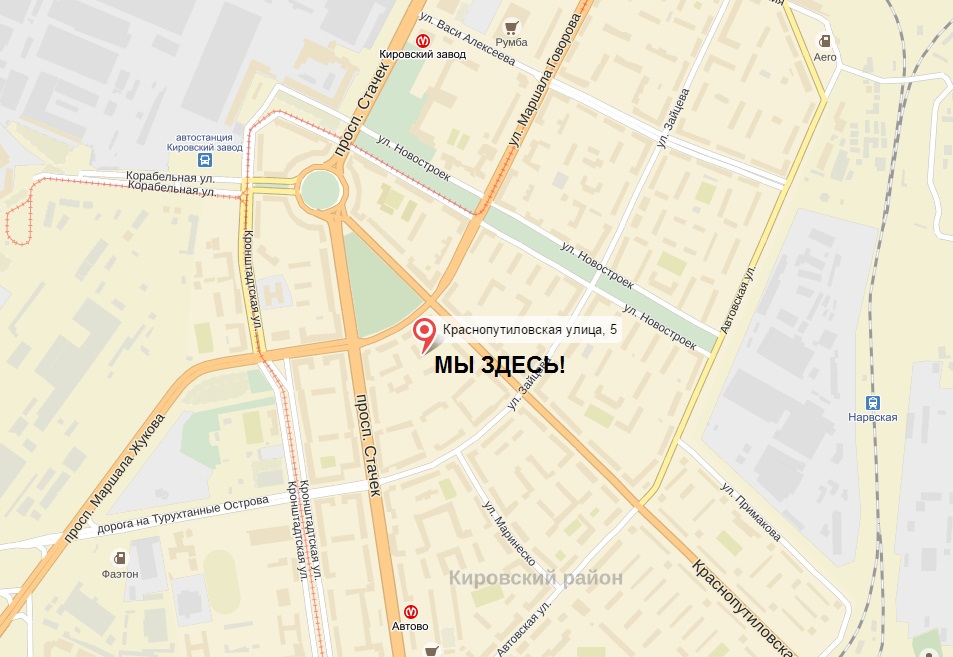 Адрес: 198152, ул. Краснопутиловская, д.5 корп.1 офис 1-11 (5 мин от м"Автово", 7 мин от м"Кировский Завод)